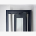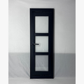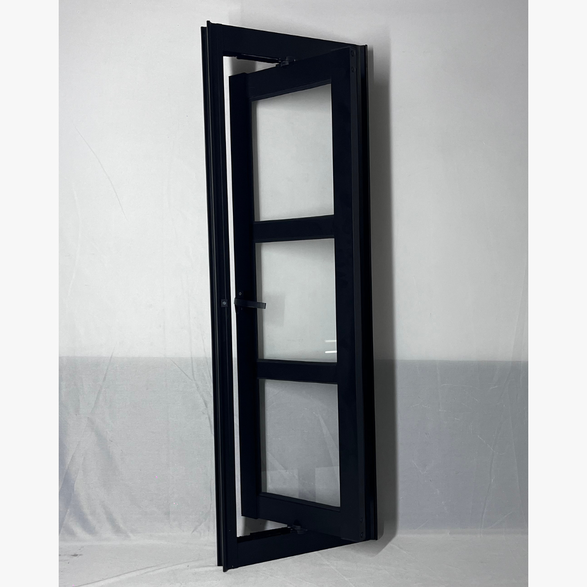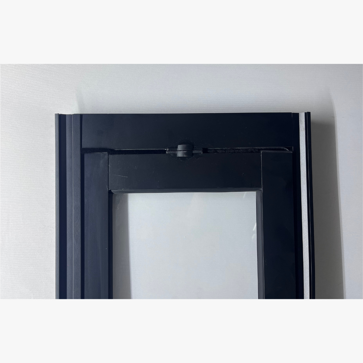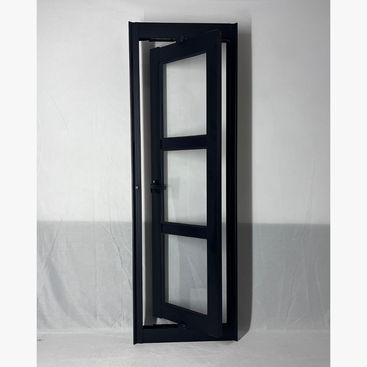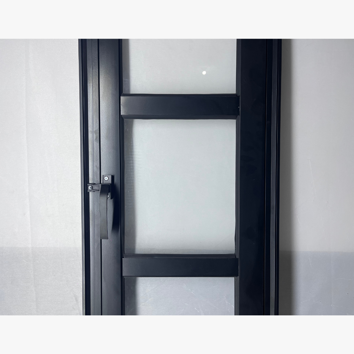 Composto por duas travessas horizontais que dividem o vitrô em três partes de vidro, o modelo oferece um acabamento refinado e simétrico. Fabricado em alumínio extrudado com pintura eletrostática preta, ele apresenta alta resistência à corrosão, maresia e variações climáticas, sendo indicado tanto para ambientes internos quanto externos.